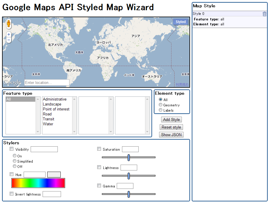 Google Maps API Styled Map Wizard 日本語化 紹介記事